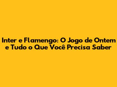 Inter E Flamengo: O Jogo De Ontem E Tudo O Que Você Precisa Saber