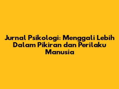 Jurnal Psikologi: Memahami Pikiran Dan Perilaku Manusia