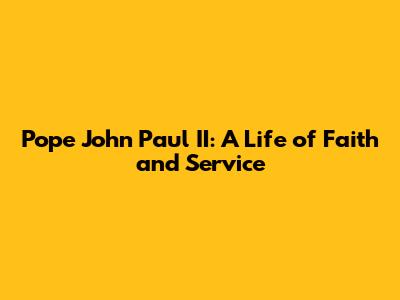 Pope John Paul II: A Life Of Faith And Service
