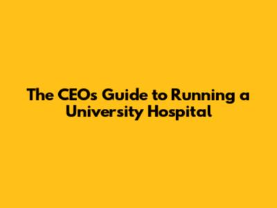 The CEO's Guide To Running A University Hospital